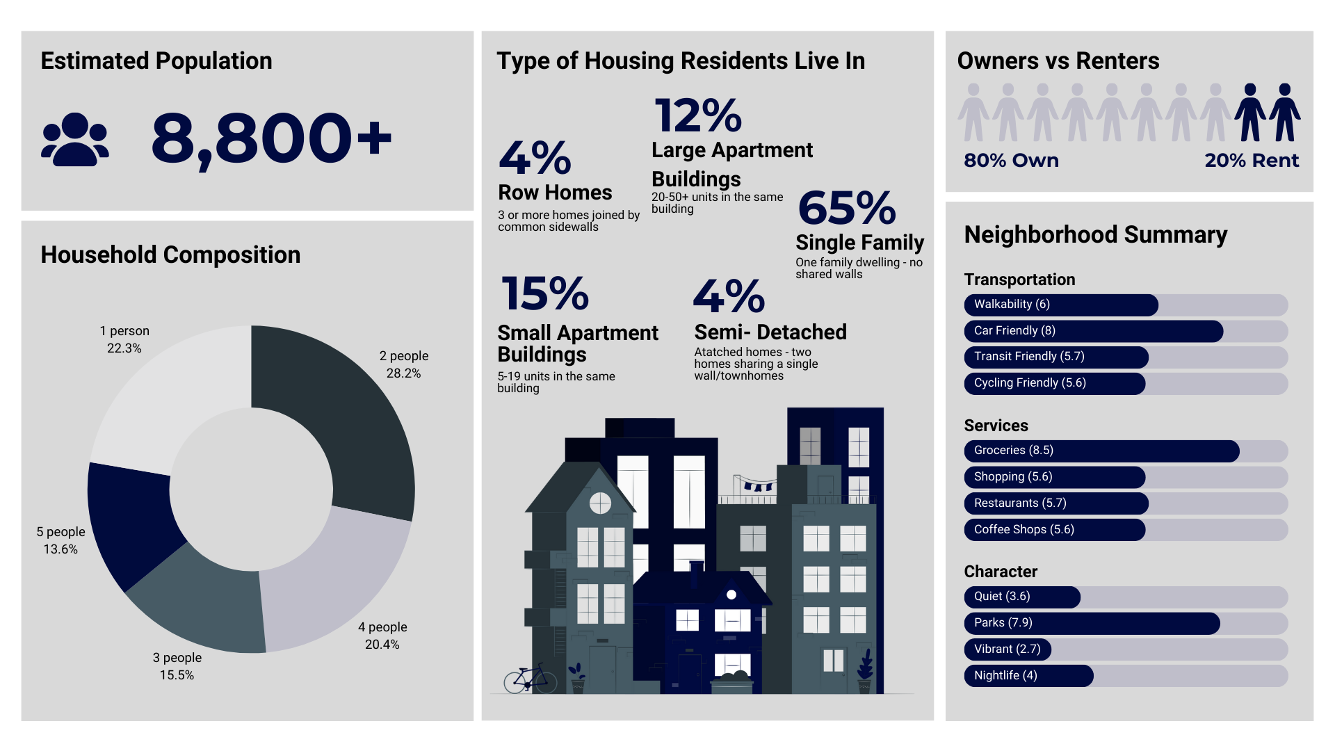 A community portrait serves as a comprehensive snapshot of a given location, offering valuable insights into its socio-economic, demographics and cultural dynamics. The diversity make up of people from different cultural backgrounds, age groups, income levels and education can contribute to the liveliness of a neighborhood. To help you understand the community portrait, we've analyzed the area around this location to identify different dynamics of this neighborhood